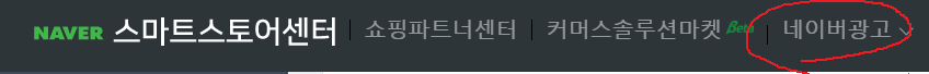 스마트스토어센터 상단 메뉴 중 "네이버광고" 가 있다.